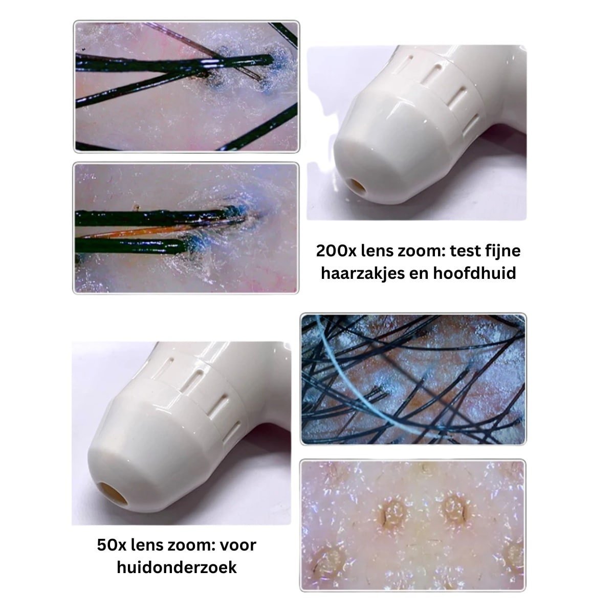 200X Objectif : Plongez dans les détails. Analysez chaque follicule pileux, détectez les problèmes de cuir chevelu tels que les pellicules, les pores obstrués ou les premiers signes de perte de cheveux. Convainquez sans peine votre client de la nécessité d'un traitement spécialisé du cuir chevelu ou d'une restauration capillaire.