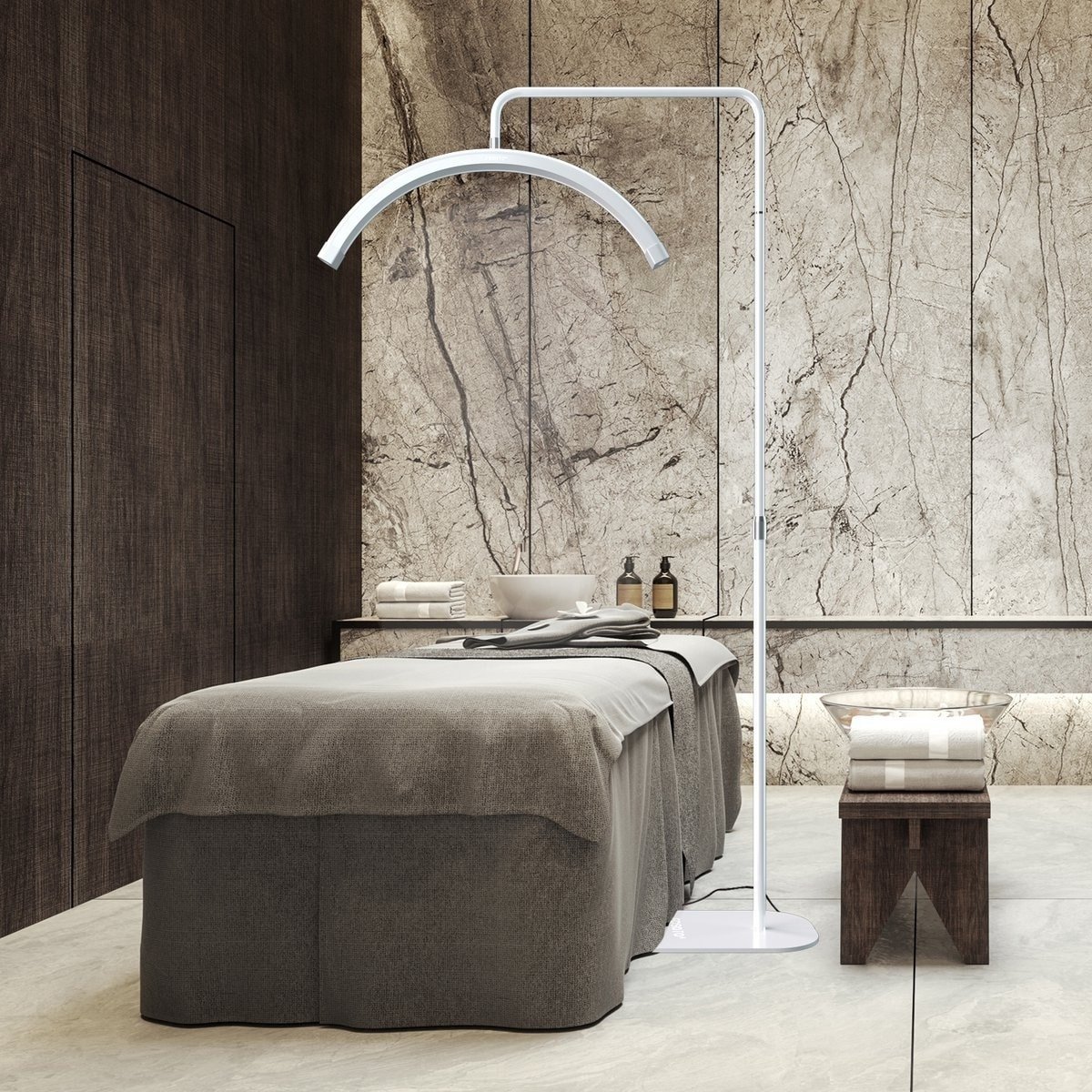 Cette lampe a été conçue en tenant compte du bien-être du spécialiste et du client. La large tête rotative et la hauteur réglable vous permettent de positionner sans effort la lumière à l'angle parfait, favorisant ainsi une position de travail ergonomique. En même temps, votre client bénéficie d'une lumière agréable et diffuse qui ne l'éblouit pas, ce qui contribue à une expérience confortable et relaxante, même pendant les séances de traitement les plus longues.
